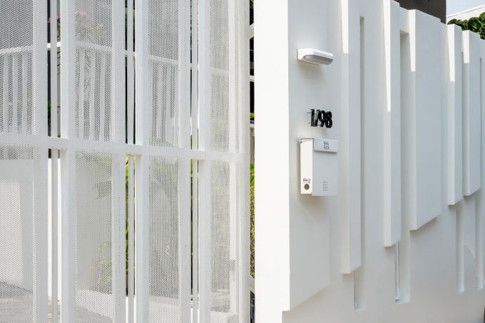 Cánh cổng có thiết kế dạng lưới cũng là một giải pháp giúp ngôi nhà phố thoáng đãng hơn