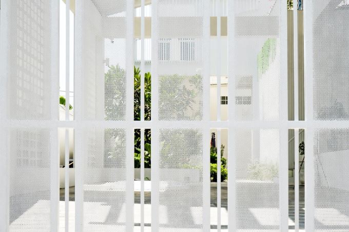 Thiết kế không phân chia không gian ngôi nhà bằng những đường cố định mà linh hoạt mở ra các luồng ánh sáng, thông gió và tạo điều kiện để cây xanh phát triển. Điều này được thực hiện thông qua các vật liệu như tường đục lỗ, khối thông gió và hành lang mở. Chúng đóng vai trò là môi trường trung gian giữa không gian bên trong và bên. Nhờ vậy vừa đảm bảo sự riêng tư vừa mang đến sự thoải mái cho gia chủ.