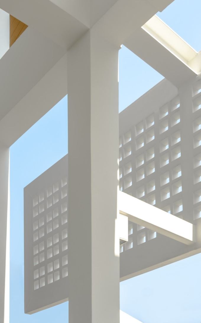 Các thanh lam cũng được sử dụng, tạo nên nhịp điệu cho ánh sáng và giúp ngôi nhà thông thoáng hơn