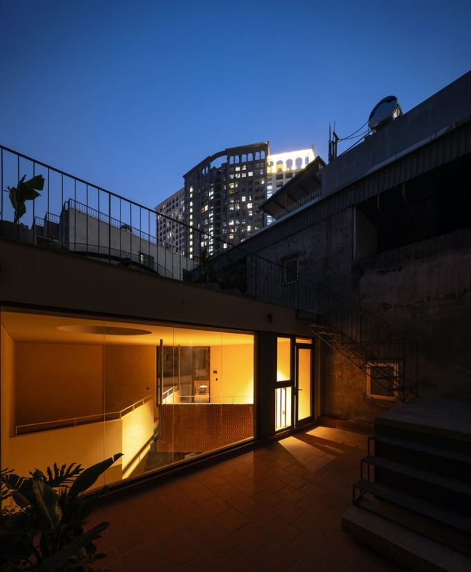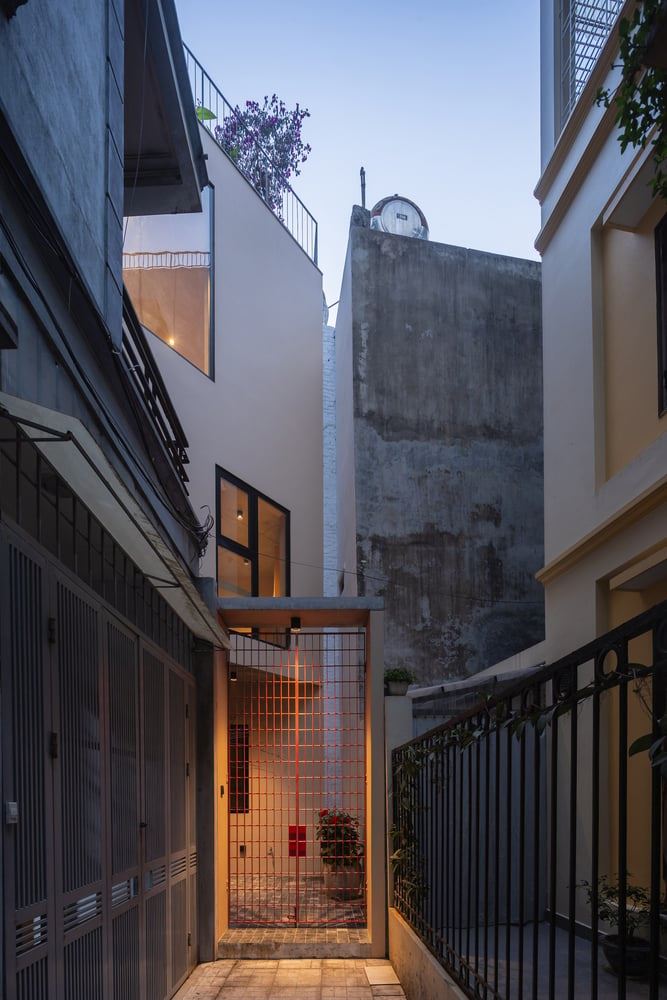 Từ con hẻm nhỏ chỉ rộng 1,5 mét, Lĩnh Nam House hiện ra như một "ốc đảo" sáng nhẹ giữa phố thị chật chội