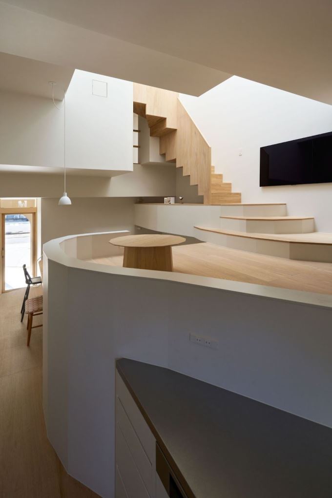 Khi đi từ cửa chính vào, các khoảng sàn trong House in Hirano sẽ được nâng cao dần