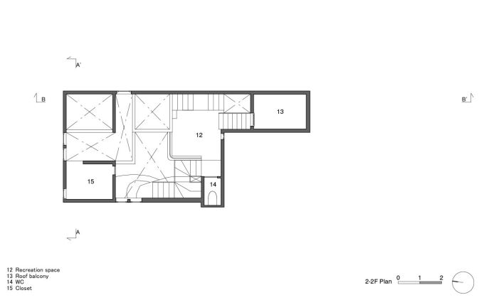 Kế hoạch đưa ra là xếp chồng dần dần từ ngoài tiến vào bên trong, tựa như một ngọn núi tự nhiên. Cách thiết kế này cũng giúp tạo cảm giác cởi mở và tự do hơn. Để phá vỡ cảm giác của một ngôi nhà thông thường, sàn nhà sẽ nâng cao dần, tạo ra nhiều khu vực chức năng hơn và cũng mang đến cảm nhận tự nhiên hơn.