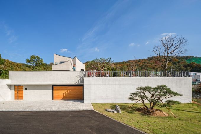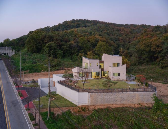 Giữa ranh giới của núi Myeongbong và vùng đồi dốc thoải, Flower House xuất hiện như một đóa hoa nở rộ kín đáo mà cuốn hút. Ngôi nhà lặng lẽ hòa vào cảnh quan, mang đến không gian sống tách biệt với tiếng ồn và sự xô bồ của thế giới bên ngoài.